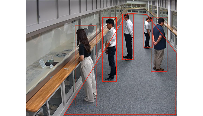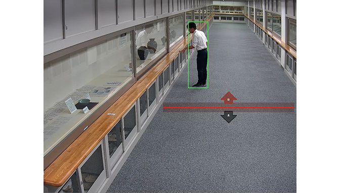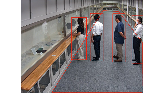 行列検知、集まり検知、ラインクロス検知、侵入検知、滞留検知、特定エリア侵入検知の6つのAI検知機能を搭載しています。カメラに搭載されたAIが人物、車両、自転車などを判別し、対象の被写体を検知した際に、録画の開始やE-mailを送信します。