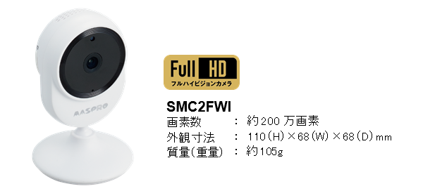 マスプロ電工は、画素数が約200万画素のフルハイビジョンに対応し、無線LANに接続することで、外出先からでもスマホやタブレットなどで、撮影画像を確認できるスマートカメラSMC2FWIを8月上旬より発売します。