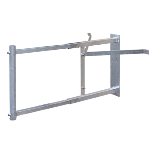 軒先にあわせて伸縮(伸縮範囲500~800mm)が可能です。直径25~32mm、長さ1.82m以下のマスト用サイドベース。溶融亜鉛めっき