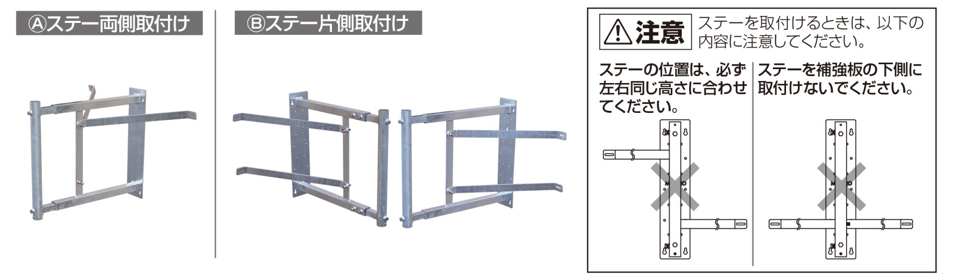 (どちらでも取付可能な場合は、強度がより高い「ステー両側取付け」を推奨します)