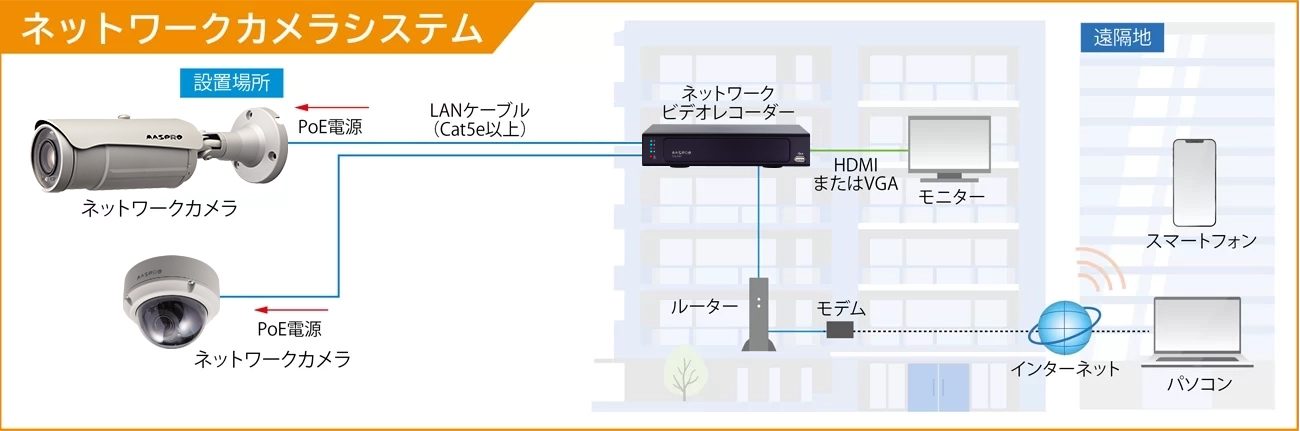 • LANケーブル1本で映像と電源を供給(PoE方式)