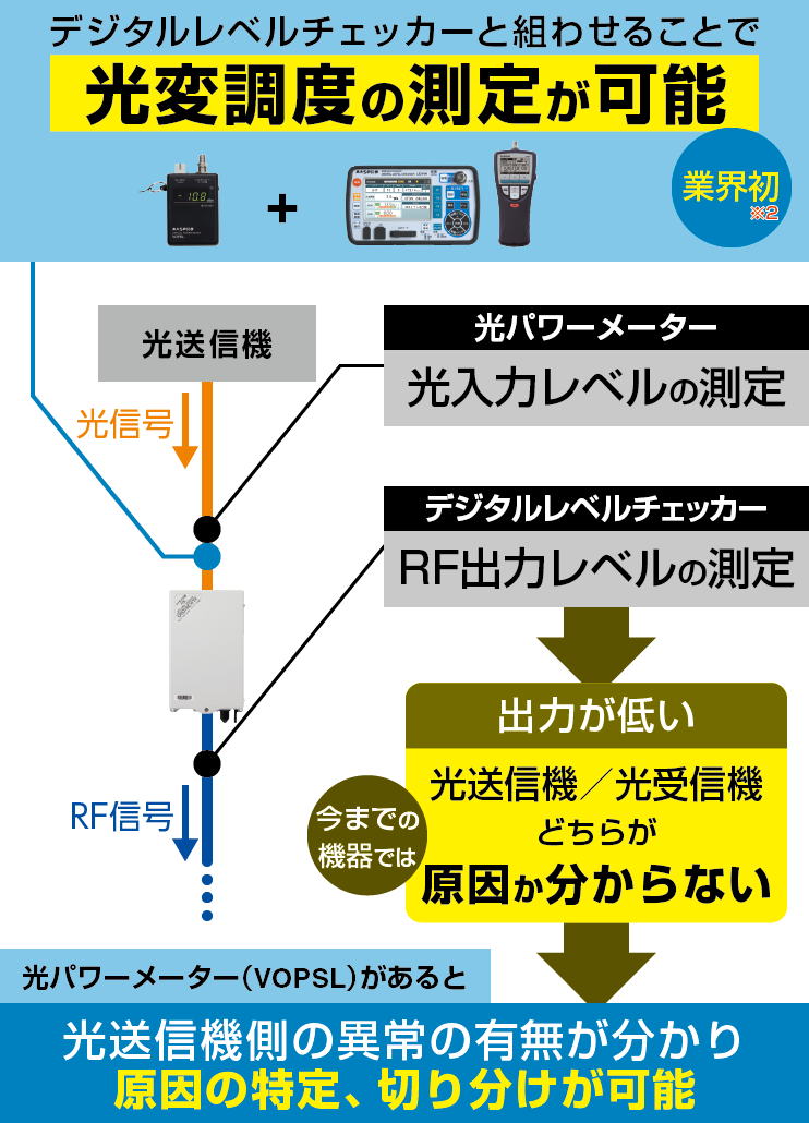 業界初デジタルレベルチェッカーと組合わせて光変調度を測定可能