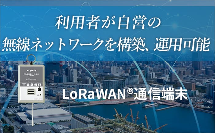 LPWAの特長である長距離通信、低消費電力に加え、利用者がLoRa®方式のゲートウェイを設置することによって、自営の無線ネットワークを構築、運用できる特長があります。企業内の利用や、施設内におけるセンサーを用いた計測利用に適しています。