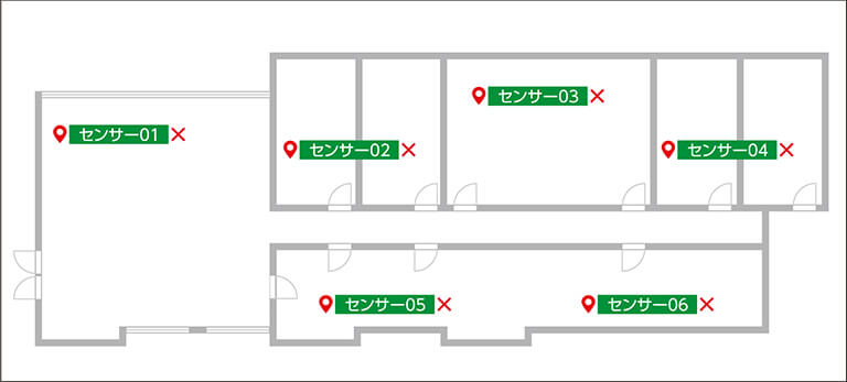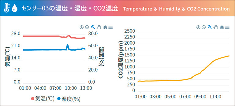 センサー端末1台で設置場所のCO₂濃度・温度・湿度を同時に計測できます。