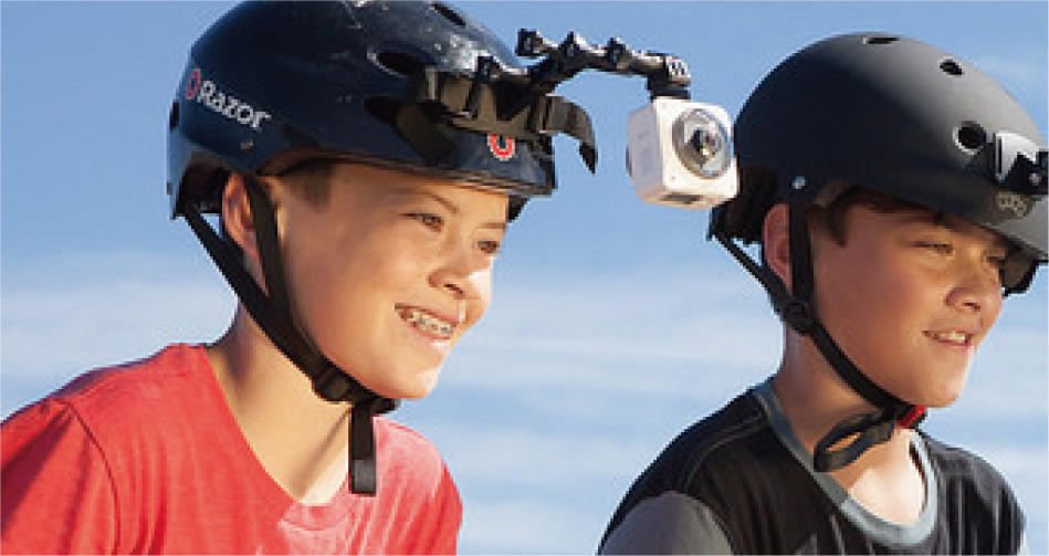 - ヘルメットにSP360/SP360 4Kのレンズを上向きに直接装着するためのバンドマウントです。